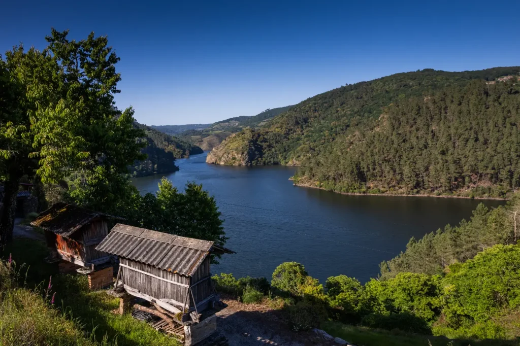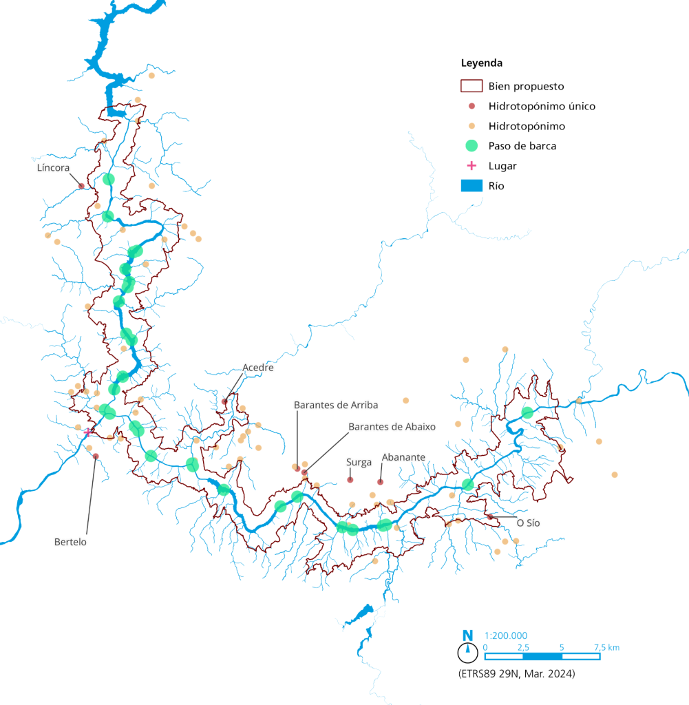 Los nombres de los ríos principales de la Ribeira Sacra provienen de raíces paleoeuropeas que significan agua. Tal es la esencia de esta tierra húmeda, empapada también en lo inmaterial del espíritu del agua, que pervive en los hechizos de las mouras que guardan sus fuentes; en los tesoros ardientes, que siempre acabarán sumergidos en el río; en el amor de sus gentes por las xacias, que moran en los pozos profundos de los ríos; en aquellas armas ofrendadas al Sil, en aquella «religión de las fuentes»; o en las divinas aguas que perseguía Martiño de Dumio fundador de las primeras comunidades monásticas de esta Ribeira.