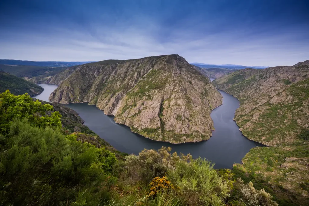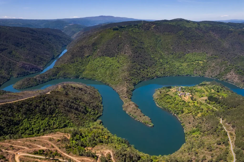 La unión de los ríos Miño y Sil y de cientos de hilos de agua conforma un territorio de altos cañones y valles fluviales, por donde el agua discurre entre abruptas pendientes.
